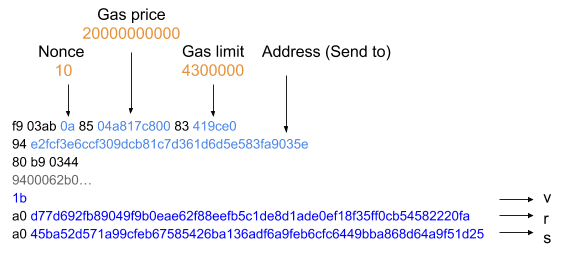 最後的signature就是直接放rsv(把rawTx作RLP encoding然後hash再sign,然後取rsv值)